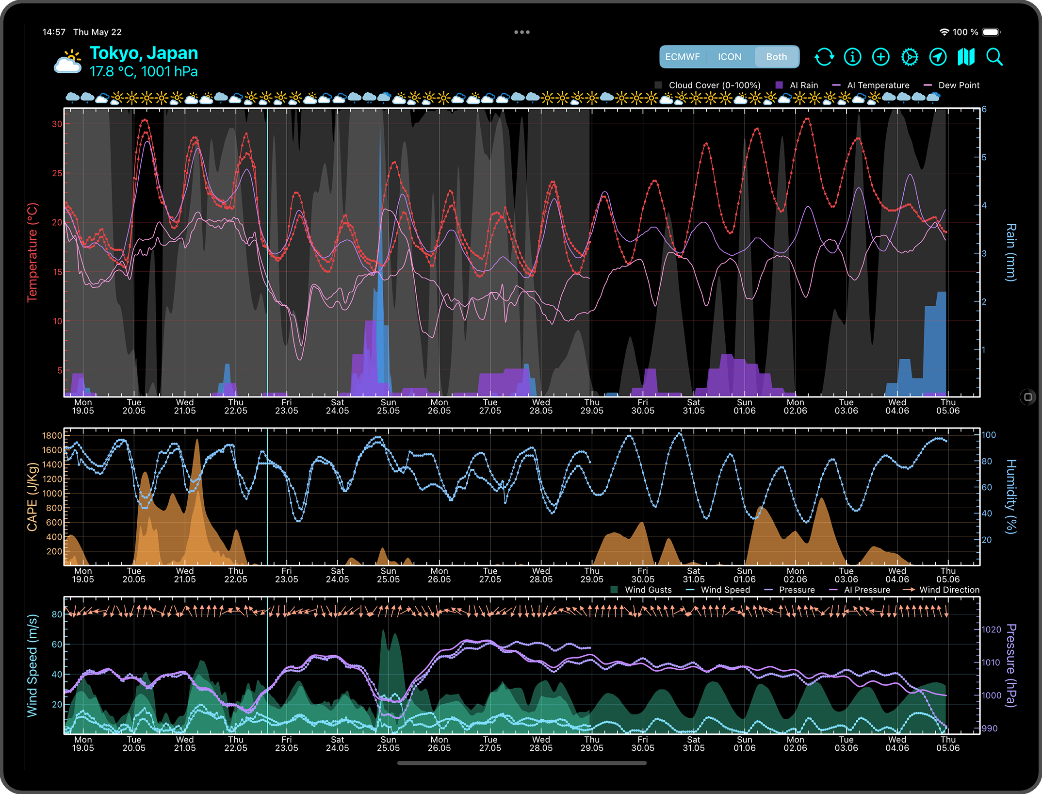 data from two weather forecast models (ECMWF and DWD ICON)data for every place on the world